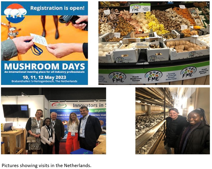 As part of my exposure, I attended a mushroom industry event in Den Bosch, facilitated by Wim Joosten, where different players in the value chain presented their work. I also had the opportunity to visit a female Dutch mushroom farmer, whose insights further enriched my understanding of the practical aspects of mushroom farming.