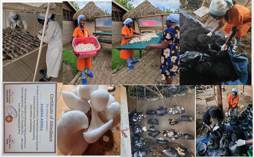 To strengthen my practical skills, I later attended a hands-on training in oyster mushroom production at the Mushroom Training and Resource Centre (MTRC) in Kabale, Uganda, in November 2023, with support from SABFA. Following this training, I received a start-up loan of €500, which enabled me to acquire essential equipment and begin operations.
